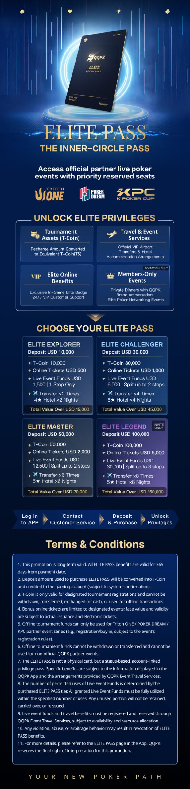 ELITE PASS egy 365 napos elit póker tagság. Nem cashback. Nem promóció. Hosszú távú presztízs.